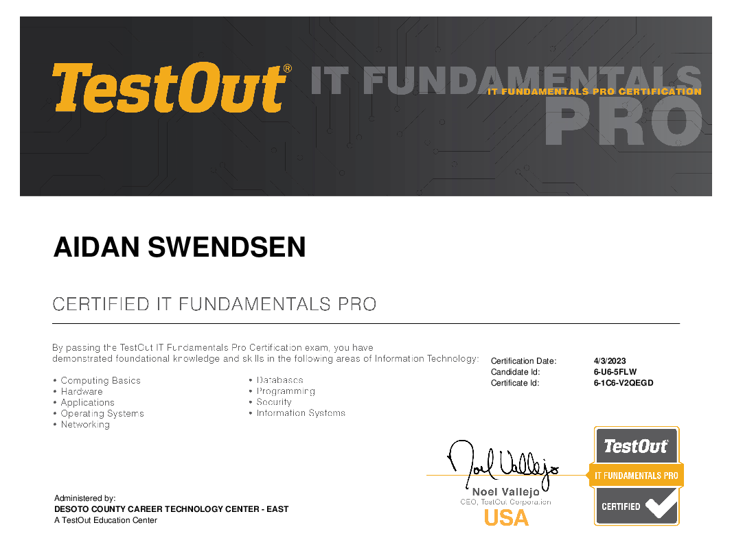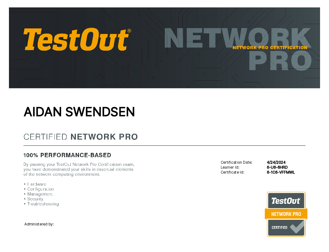 A certification all about networking. I also got this one through Testout, so it's also based off of the CompTIA cert of the same name.